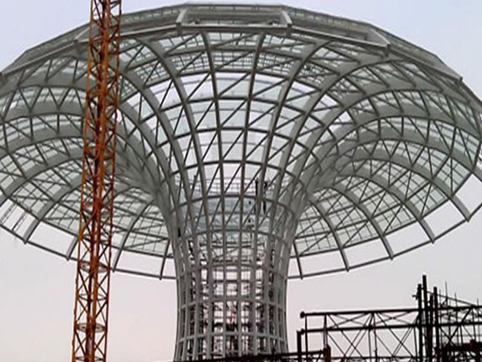 二、球形网架结构因其结构新颖,受力合理,自重轻、用钢量低等优点。如大型体育场馆球形枣庄螺栓球网架、公共场馆球形网架、电厂枣庄螺栓球网架、水泥工业球形网架、仓储物流球形网架、枣庄干煤棚工业球形网架、枣庄收费站枣庄加油站球形网架、展览中心、影剧院、商场、航站楼、候车厅、工厂枣庄车间、仓库、电视塔等球形螺栓球节点网架。国内球形网架结构主要分为:枣庄焊接球节点网架及螺栓球节点网架两种。螺栓球节点网架其构件工厂内加工量较大,现场安装便捷,适用于现场工期紧,枣庄施工条件、用电量受制约,网架形状复杂、枣庄杆件定位困难的异形结构。螺栓球节点球形网架系统基本由枣庄杆件、螺栓球、支撑支座等组成。按照节点形式可分为交叉枣庄桁架体系、四角锥体系、三角锥体系等。支撑方式多为固定支座支撑。对于大面积、大跨度及有特殊受力或伸缩要求的网架结构可采用橡胶支座、滑移支座、球铰支座等支撑形式,以满足结构自身的受力稳定、均衡,便于内力释放等设计要求。